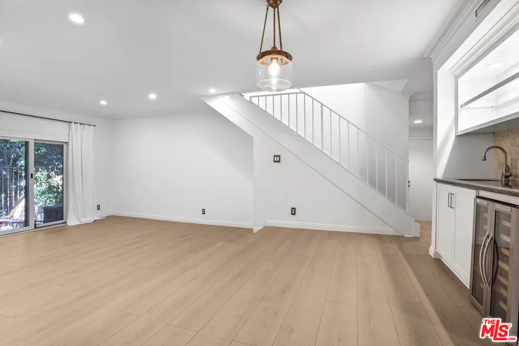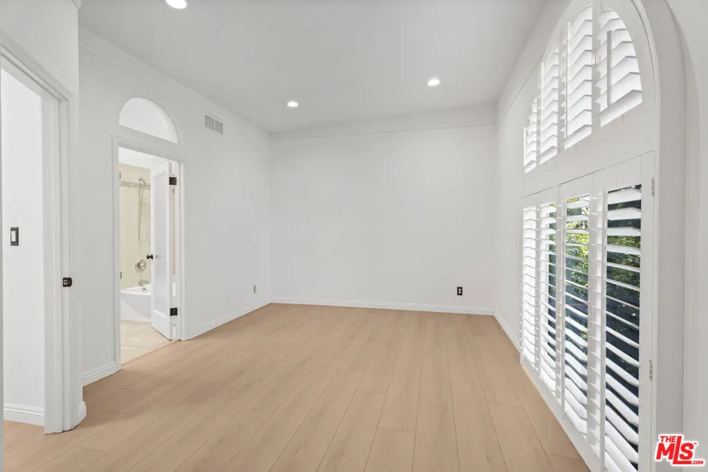 Elegant and spacious 3-bedroom, 3-bath Westwood townhome offering refined comfort, thoughtful updates, and a private outdoor retreat. Newly installed flooring flows throughout the home, while the beautifully updated kitchen features quartz countertops, a tiled backsplash, custom cabinetry, and a charming breakfast nook. Just beyond, the dining area is ideally positioned for both everyday living and entertaining, complete with a custom built-in bar and wine fridge. A step-down living room creates a warm and inviting focal point, enhanced by a custom built-in bookcase and direct access to a serene, tree-lined private patio. Surrounded by mature hedges and anchored by a graceful magnolia tree, this outdoor space feels like a true hidden oasis in the heart of Westwood. Fireplace is for decorative purposes only. The first floor also includes a welcoming entry with closet, a versatile bedroom or bonus room, an updated bath with shower, and conveniently located in-unit side by side washer and dryer. Upstairs, the generous primary suite is filled with natural light and architectural character, highlighted by a dramatic floor-to-ceiling arched window with custom shutters, high ceilings, recessed lighting, and a large walk-in closet. The en-suite bath features a skylight, glass-enclosed tub and shower, spacious vanity, and additional storage. A third bedroom and full bath complete the upper level.Additional amenities include tandem parking for two cars in a gated subterranean garage, a personal EV charger, and a spacious private storage unit with built-in shelving located just steps from the parking area. Four guest parking spaces are also available in the garage. Ideally situated in one of Westwood's most convenient locations, this home is moments from an array of shops, restaurants, and daily conveniences, UCLA and near highly regarded Westwood Charter Elementary. Offering space, privacy, and elevated living, this exceptional townhome presents a rare lease opportunity in a sought-after neighborhood.