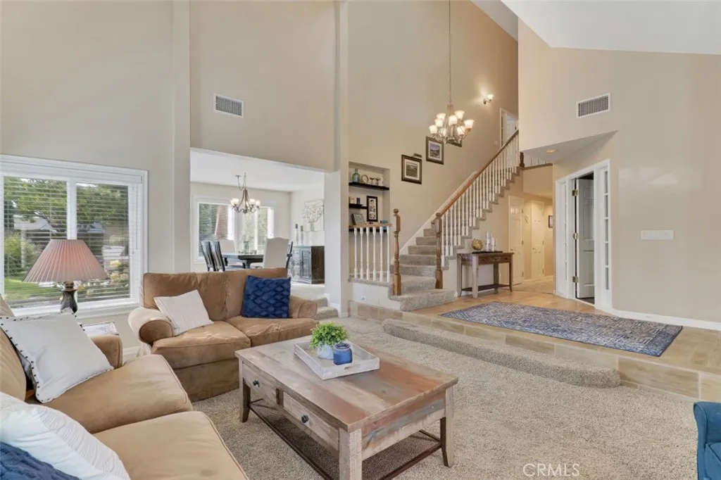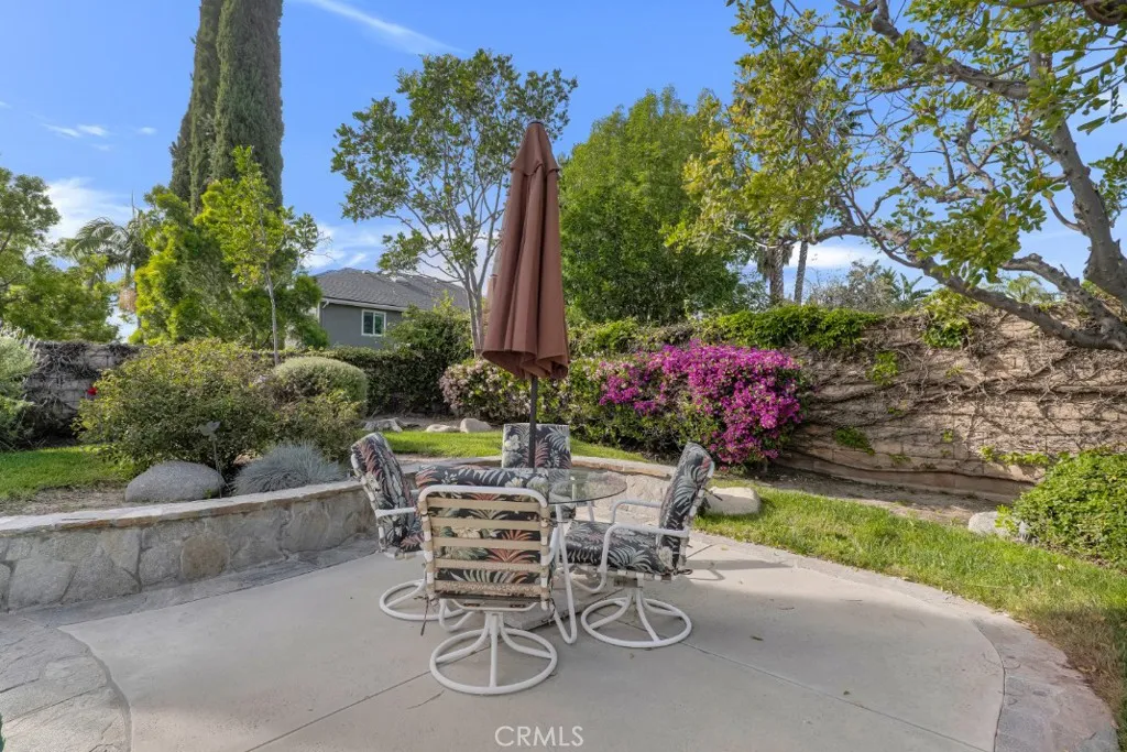 Welcome to this beautifully maintained 4-bed, 2.5-bath home with nearly 2,700 sq ft of living space on an expansive 8,712 sq ft lot. exceptional curb appeal. The inviting landscaping & lush, green lawn are bordered with natural stone & matching tiered pathway leading to the double front doors. The entry features stylish tile flooring designed to resemble wood & opens to a bright & airy interior with soaring ceilings, architectural details, & an abundance of windows throughout. Step down to the formal living room with a front bay window & built-in window seat. Steps up to a formal dining room framed by wall-to-wall windows overlooking the beautifully landscaped backyard & dedicated rose garden. The spacious kitchen is designed for function & style with granite countertops, center island, built-in gas range, double wall ovens with convection, generous pantry, & garden window above the sink offering backyard views. A breakfast nook with sliding glass door opens to the back patio. A peninsula with bar seating opens to the large family room with cozy fireplace & built-in entertainment wall. A ¾ guest bath, dedicated laundry room with direct garage access, & a sizeable guest room/home office completes the main level. Upstairs are 3 additional bedrooms including the primary suite has vaulted ceilings, a massive walk-in closet (a thoughtfully converted bedroom - can be converted back, if desired), & en-suite bath with additional walk-in closet, dual-sink vanity, soaking tub, glass enclosed shower, & private water closet. A full hall bath with granite countertops & dual-sink vanity serves the other 2 bedrooms. The backyard offers a resort-style setting with expansive patio with pergola-covered area, & built-in BBQ offer perfect entertaining spaces, while the sparkling pool features a raised spa with waterfall overflow to the pool. A beautifully landscaped elevated lawn area frames the pool & spa with a natural stone retaining wall - all highlighted by drought-tolerant plantings & charming trees. Just steps away, the rose garden provides a peaceful retreat. In addition to the 3-car garage, the paved driveway extends beyond double gates to the side of the house, ideal for RV parking. Conveniently located near outdoor recreation including Corriganville Park & Rancho Tapo Community Park, nearby shopping & dining along Cochran Street & Tapo Canyon Road, plus easy access to the 118 Freeway.
