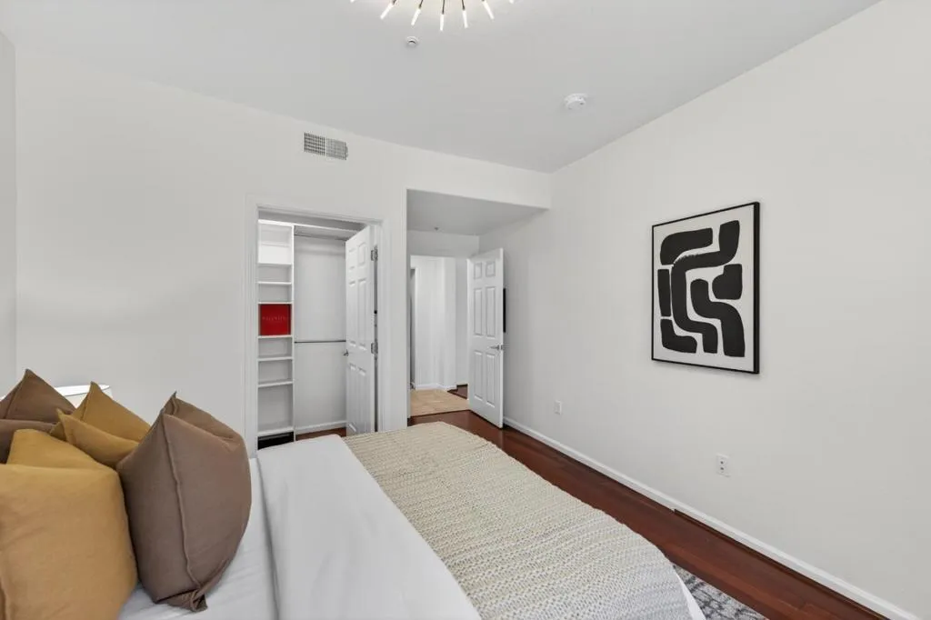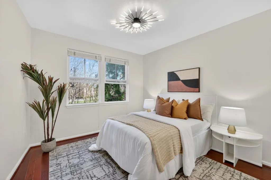 Stylishly updated home in the gated Midtown Plaza community overlooking O'Connor Park. Fresh interior paint, freshly painted kitchen cabinets, and laminate flooring highlight the open living space with granite countertops, stainless steel appliances, a brand new dishwasher, new in-unit washer/dryer, and a brand new modern contemporary ceiling fan and lighting fixture. The renovated bathroom features a sleek shower stall with niche and infinity drain. The bright bedroom offers abundant natural light and a walk-in closet with built-in shelving. Enjoy a private balcony with peaceful park views. Community amenities include pool, fitness center, clubhouse, and secure underground parking with elevator access. Convenient to Hwy 280, Santana Row, Valley Fair, shops, restaurants, and cafes.