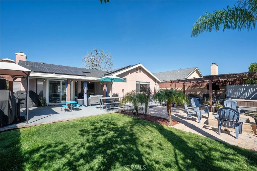 Terrific single story home ideallly located on a cul-de-sac! This home has Great Curb Appeal with a Charming Front Porch and OWNED SOLAR!!! The Remoldeled Kitchen highlights, Center-Island, durable Quartz Counter-Tops, Tile back splash, Stainless Steel Appliance Package, including Wine Frigde and Coffee Bar Station!! Luxury Vinyl Flooring, Ceiling Fans, Recessed lighting, and cozy Fireplace! Owners have recently installed a Split-Air Conditioning Unit in the Garage!! Large Primary Bedroom with En Suite Bathroom and Walk-in closet with updated closet organizers!! All Bedrooms have Newer Carpeting!! The Entertainers Back yard has covered dining and entertainment areas, above ground spa, Fire-pit!! and Newer Fencing with No Rear-Neighbors!!! Located just minutes away from Castaic Lake, Castaic Sports Complex that features an Olympic-sized pool, kids play area!!! Easy Freeway access, walking distance to elementary school. Dont miss this opportunity!! No HOA, No Mello-Roos!!