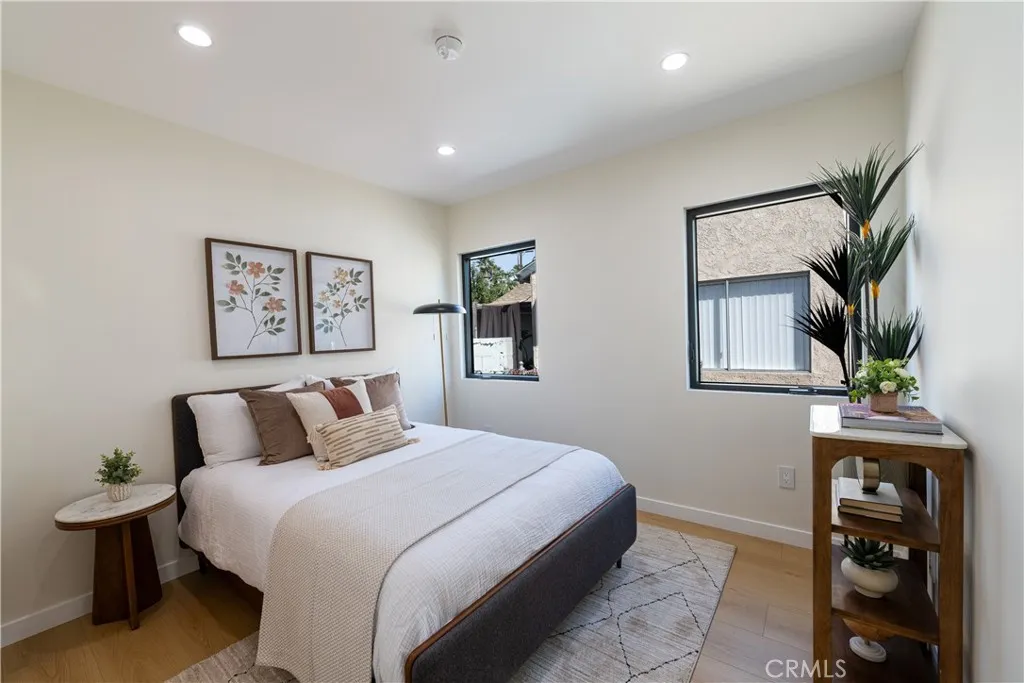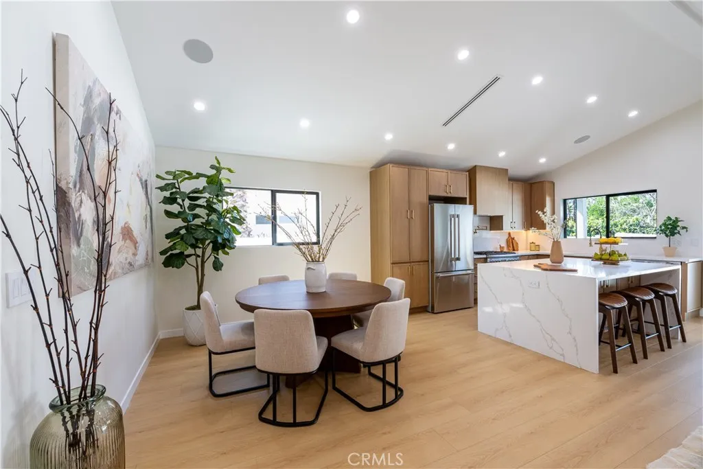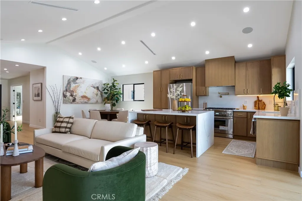 Located in the highly desirable Encino Park neighborhood, this fully reimagined residence has been thoughtfully rebuilt down to the studs and expanded by nearly 1,000 additional square feet, offering a true new construction–like experience. Now spanning approximately 2,000 square feet, the home features 4 bedrooms plus a dedicated office (optional 5th bedroom) and 3.5 bathrooms, providing flexibility for modern living. The interior is defined by elevated ceilings and a bright open-concept floor plan, creating a seamless flow between the living, dining, and kitchen areas. The kitchen is equipped with Thermador appliances, quartz countertops, and custom cabinetry, designed for both everyday functionality and entertaining. The primary suite offers a private retreat with a custom walk-in closet and a spa-style bathroom complete with a soaking tub and walk-in shower. Major system upgrades include new plumbing, electrical, HVAC, and a new roof, delivering the comfort and efficiency expected in a fully rebuilt home. Additional features include a built-in Sonos sound system in the main living areas, primary suite, and backyard, outdoor security cameras, and wireless internet boosters for enhanced connectivity throughout. The backyard is designed for indoor-outdoor living, featuring a covered Trex deck, built-in BBQ, and natural grass, creating a private and functional outdoor setting. Ficus trees enhance privacy in the front yard, while a finished two-car garage adds convenience. Situated in one of Encino’s most sought-after neighborhoods, this move-in ready home offers a rare combination of modern upgrades, expanded living space, and prime location.