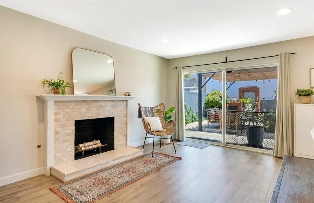 Beautifully updated single-level home showcasing an open-concept layout and thoughtfully curated finishes throughout. From the charming curb appeal—highlighted by a wood-grain garage door and custom window box planters—to the stylish interior details, this home blends comfort and design effortlessly. Inside, the light-filled living room offers a warm and inviting space with recessed lighting, custom window coverings, a cozy fireplace, and seamless access to the backyard—perfect for both relaxing and entertaining. The adjacent kitchen and dining area are designed for everyday living, featuring stainless steel appliances, a slide-in dual oven, French door refrigerator, granite countertops, a center island, and additional peninsula seating. The spacious primary suite serves as a private retreat with an ensuite bath showcasing dual sinks, a walk-in shower, and tasteful farmhouse-inspired finishes. Secondary bedrooms are generously sized and share a beautifully remodeled hall bathroom with updated fixtures and stylish tile flooring. Step outside to a peaceful backyard complete with a covered pergola, expansive patio, grassy area, raised garden beds, and block wall fencing—offering both privacy and functionality. This home delivers the perfect blend of style, comfort, and livability.