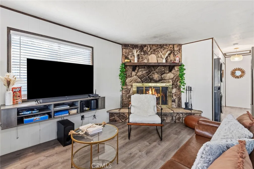 Escape to this cozy mountain cabin offering the perfect blend of charm, comfort, and convenience. Featuring 2 bedrooms and 1 full bathroom, this inviting home is ideal as a weekend getaway, full-time residence, or income-producing retreat. Inside, you’ll find an open-concept kitchen and dining area designed for easy living and entertaining. The kitchen charms with butcher block countertops, adding warmth and character, while vinyl flooring runs throughout the main living areas for durability and style. A stackable washer and dryer are conveniently located in the hallway. The living room is the heart of the home, highlighted by a classic rock fireplace with a raised hearth—perfect for cozy evenings after a day outdoors. Go outside to the front deck, an ideal space for BBQs, relaxing, and enjoying the fresh mountain air. A level concrete parking pad provides easy access and convenience. Located near the San Bernardino National Forest, this home offers quick access to hiking trails and outdoor adventure, while being just a short 10–15 minute drive to local slopes, shopping, and dining. With its prime location and inviting features, this property also presents a fantastic opportunity for short-term rental income.