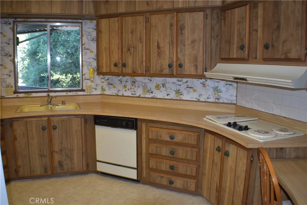 Located in the desirable Kelly Ridge community, this charming and move in ready 2-bedroom, 2-bathroom home offers beautiful valley views and a rare, back-alley access. The single-level interior features a spacious layout with a living room, built-in cabinetry, and a family room. The kitchen includes a side-by-side refrigerator, wall oven, dishwasher, and a seated breakfast counter for casual dining. Two sliding glass doors open to a large wrap-around deck, perfect for relaxing while enjoying sunsets and sweeping views of the valley and Sutter Buttes. The primary suite is generously sized and includes an en suite bathroom with double sinks, a soaking tub, and a separate shower. Additional highlights include a new roof installed in 2024, electric HVAC, swamp cooler, solar WiFi security cameras, and a Rain Bird sprinkler system. The two-car garage below the home offers a shop space, a sink, water access, and ample storage. The property features two driveways off Oak Hill, including a tall carport and a pull-through driveway to the back alley—ideal for boats, RVs, and extra vehicles. Enjoy mature landscaping with pomegranate, persimmon, apple, grapefruit, lemon, grape vines, roses, rosemary and bird of paradise. Conveniently located minutes from downtown Oroville and close to outdoor recreation at Lake Oroville.