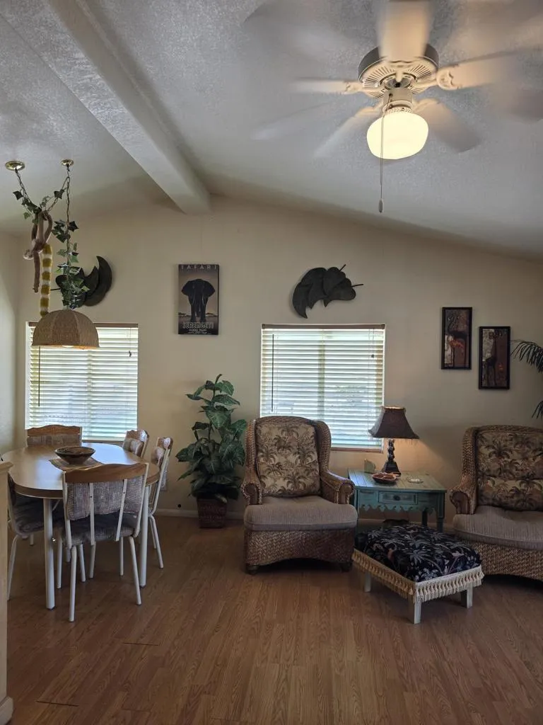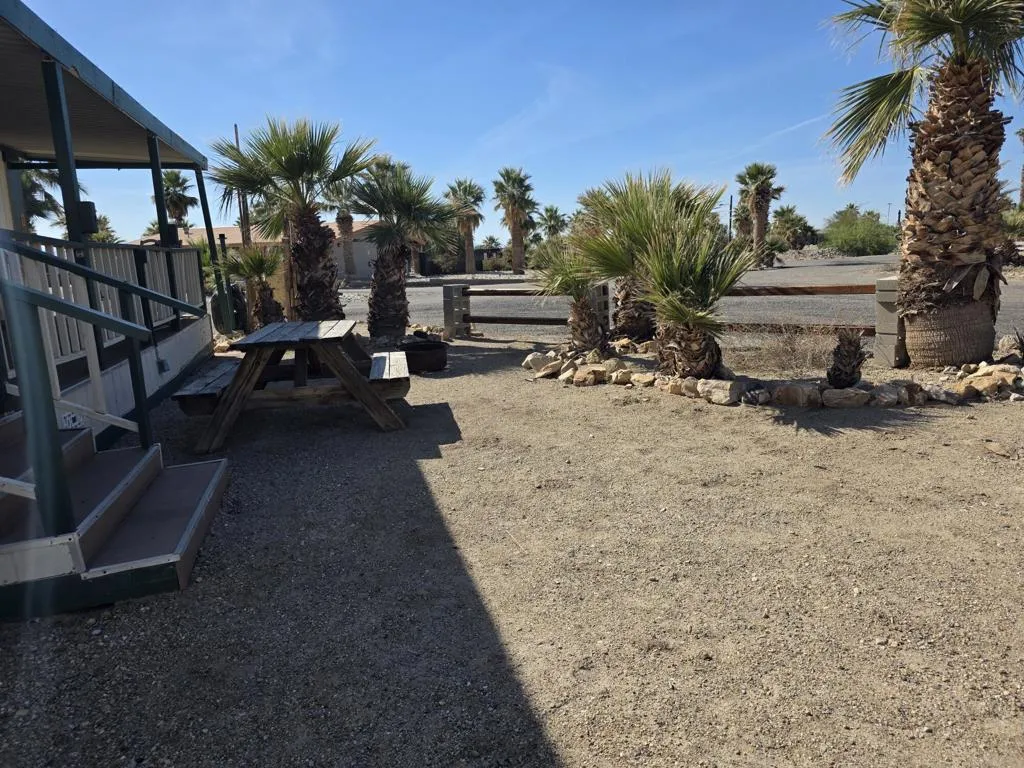 Glamis North Hot Springs Resort. Niland, Ca. 10595 Hot Mineral Spa Rd, Unit 16. The ''Jungle Hut'' African themed decor in this 2 bedroom, 1 bath with Bunk room for the kidos. This Manufactured home has it all a must see pictures. Very fun. Located close to pools and sports courts. Covered Parking.. Very well maintained and turnkey furnished. Seasonal living from October 15 to April 15 enjoy with friends and family your winter home located amongst the most perfect destination for those seeking relaxation and adventure. With natural hot springs for soothing relaxation and serene desert setting that provides a peaceful retreat from the hustle and bustle of everyday life. Spend a week and you to will be hooked. Off roaders and winter home retreat. Property sold 'As-Is', all information deemed accurate however buyer to do their own investigations to satisfy themselves. Seller and/or agent make no warranties. Must be screened by park owner.