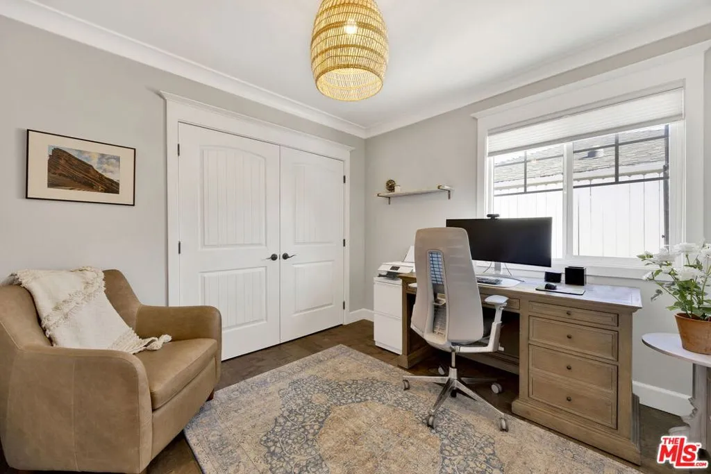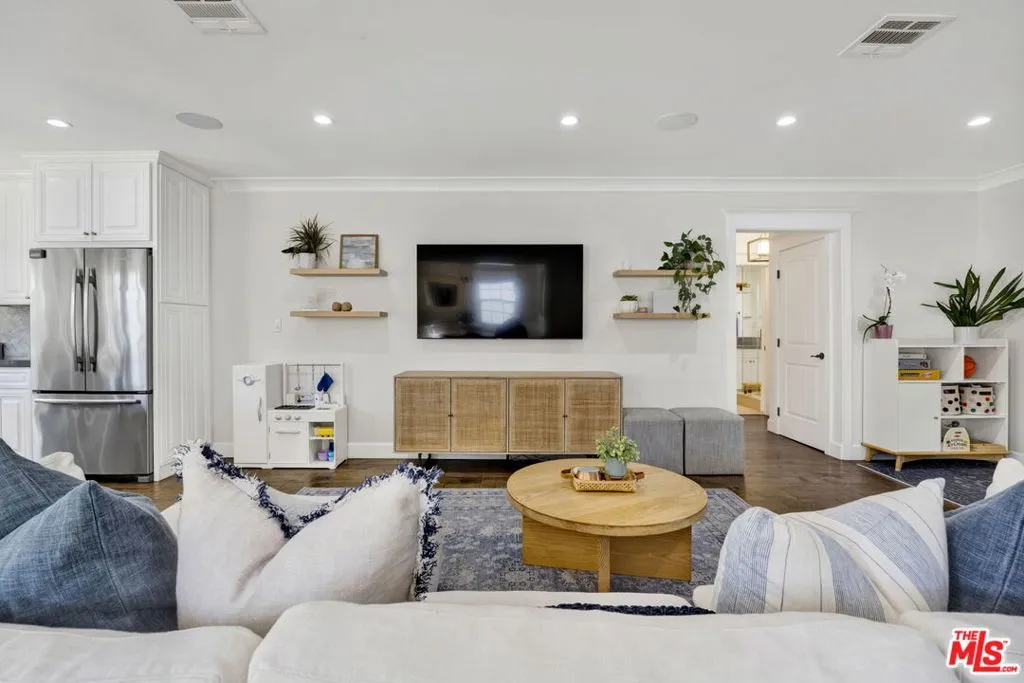Welcome home to 4621 Allott Avenue, a storybook Cape Cod style residence set behind a charming white picket fence on a quiet street in Sherman Oaks' sought-after Valleyheart Glen neighborhood. Warm and welcoming, this home offers a bright, open floor plan where the living room flows seamlessly into the dining area and kitchen, creating a connected space ideal for everyday living and entertaining. French doors open to a lush, private backyard, making indoor-outdoor living effortless. The kitchen is the heart of the home, featuring a large, beautiful center island with quartz countertops, stainless steel appliances, a Bertazzoni stove/range, and a Jenn-Air refrigerator perfect for gathering and hosting. The spacious primary suite is a peaceful retreat with French doors to the backyard, a walk-in closet, and a spa-like bath with dual sinks and quartz countertops. Three additional bedrooms offer flexibility for guests, family, or a home office. A standout feature is the large detached bonus room, currently used as a playroom and ideal for a media room, gym, studio, or work-from-home space (not included in the square footage). Additional highlights include a newer roof installed less than five years ago, solar panels, EV charger, and smart home features. Located within the boundaries of award-winning Dixie Canyon Elementary and just moments from Ventura Boulevard, this safe, walkable neighborhood offers easy access to shops, dining, parks, and a vibrant sense of community. Available starting June 1st.