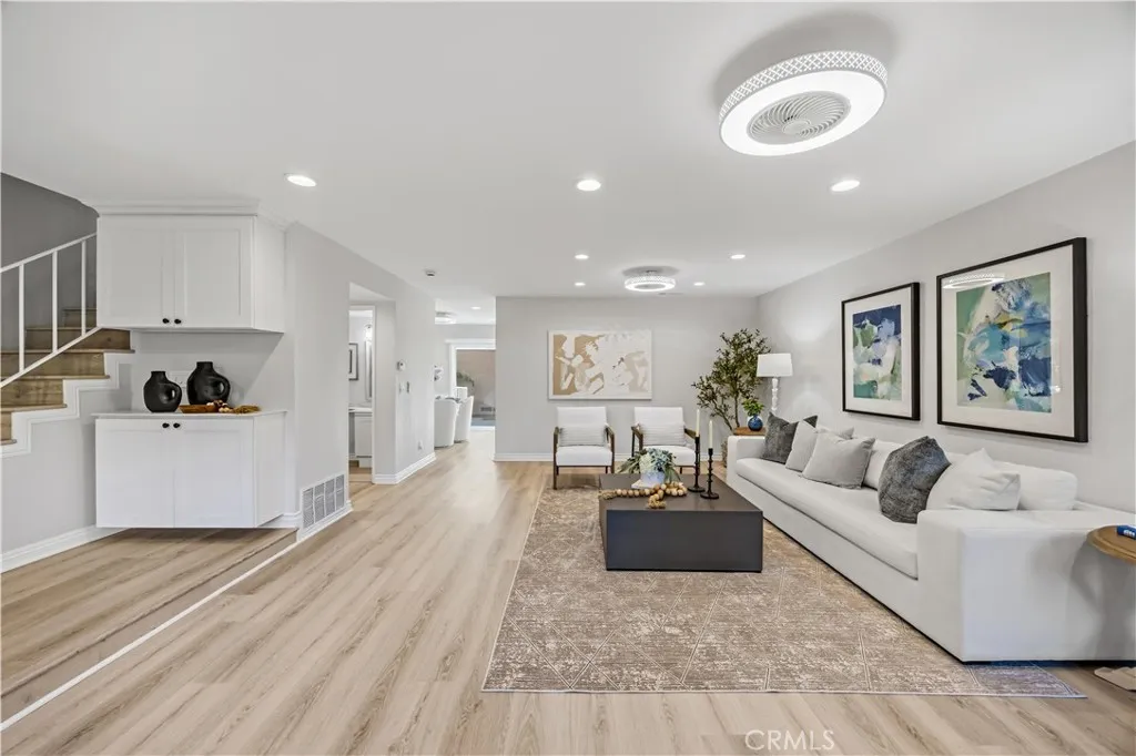 Prime location in the heart of Irvine! This beautifully upgraded home is within walking and biking distance to top-rated Irvine Unified schools (elementary, middle, and Irvine High School) as well as Irvine International Academy. The public library, Heritage Park, and Woolley Aquatics Center are just across the street, with shopping, dining, and more nearby—offering exceptional convenience for everyday living. This is one of the largest townhouse floor plans in the community, enhanced by a permitted fourth bedroom addition—Rare to find and ideal for growing or multi-generational families. The home is in true turnkey condition, featuring extensive upgrades completed in recent years, including newer flooring, refreshed interior paint, smooth ceilings, a remodeled kitchen with updated cabinetry and countertops, and beautifully renovated bathrooms. The spacious and functional layout includes a bright living room and dining area. The upgraded kitchen offers abundant storage, granite countertops, recessed lighting, and opens seamlessly to the dining area—creating a natural flow that makes it easy for family members to connect and interact. The first floor also features a remodeled powder room and additional storage space under the staircase. Upstairs features four generously sized bedrooms and two full bathrooms. The primary suite includes dual sinks, while all bathrooms are tastefully updated with quartz countertops and tile flooring. Additional highlights include luxury vinyl plank floor, wood baseboards, and new ceiling fan light fixtures in every room. Enjoy indoor-outdoor living with French doors leading to a private courtyard patio, ideal for relaxing. The patio provides direct access to the attached two-car garage. Step outside to enjoy lush greenbelt views, nearby parks, and resort-style community amenities, including a pool and wading pool—just a short walk away. Located in one of Irvine’s most desirable neighborhoods, this home offers the perfect blend of space, upgrades, location, and lifestyle. An exceptional opportunity for families seeking comfort, convenience, top-tier schools, and flexible living for multi-generational households. Come to see it and make this your new home!!!