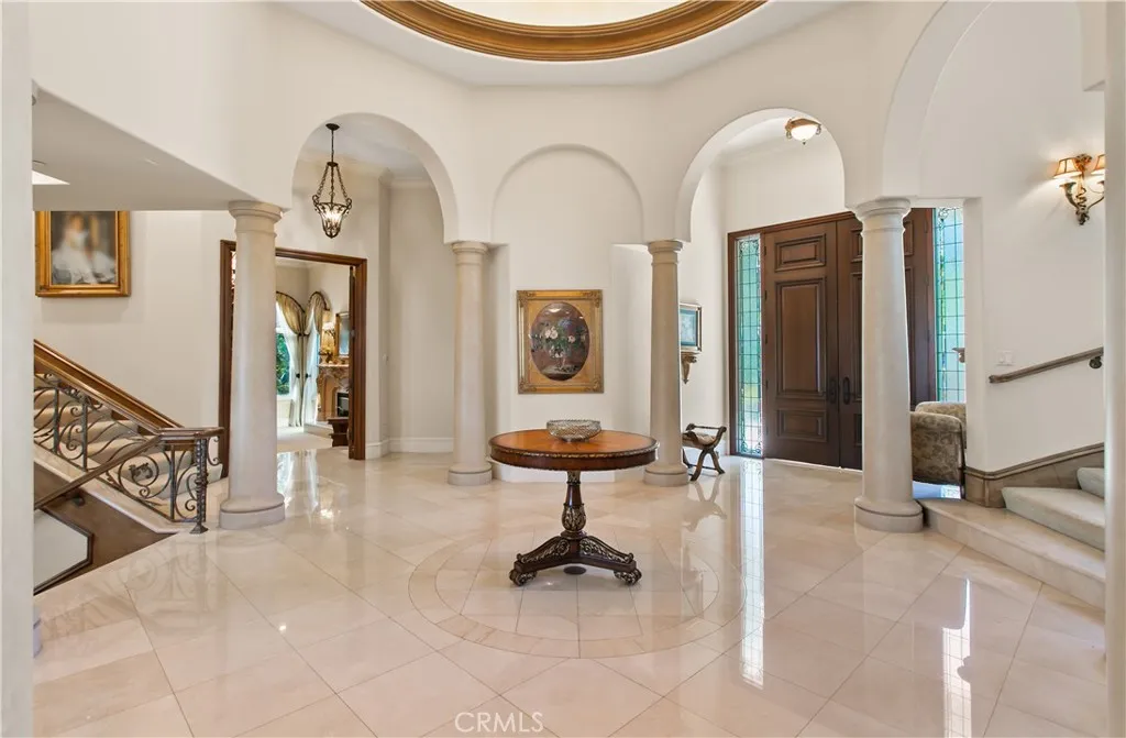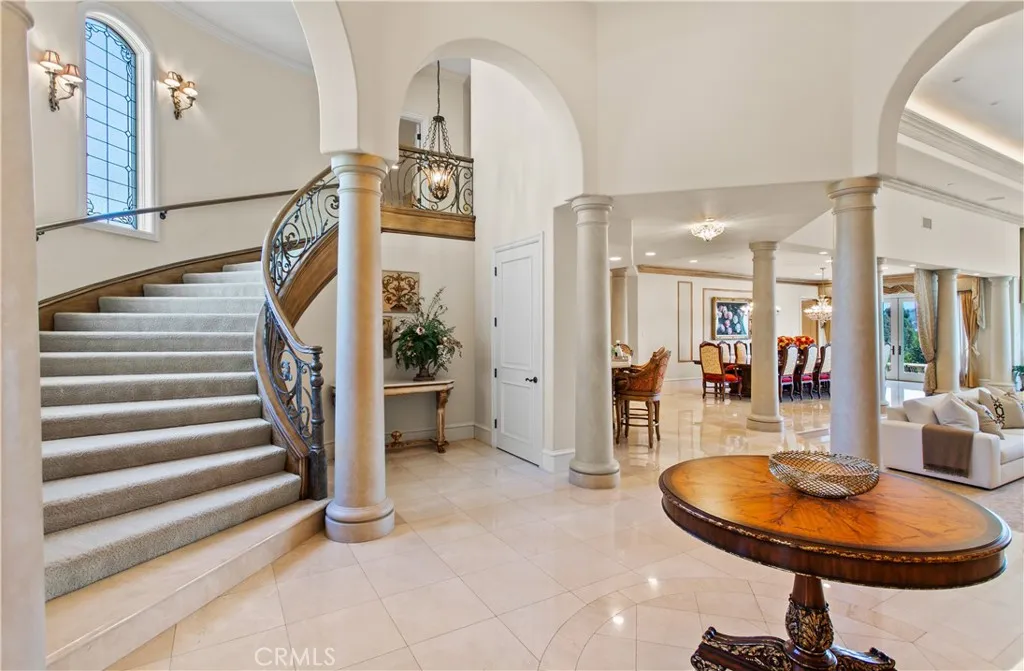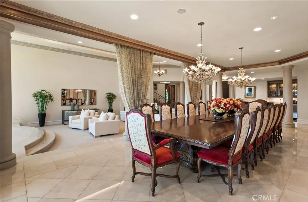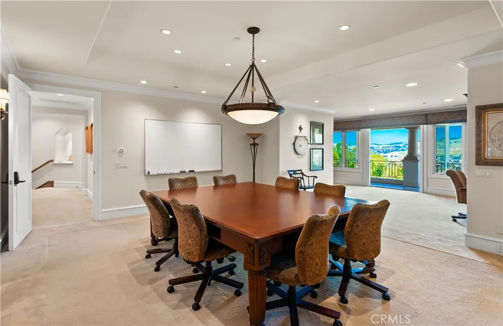 Located within the prestigious guard gated enclave of Bear Brand Ranch, 12 Morning Dove is a magnificent ocean view estate that epitomizes Southern California coastal, luxury living. Set on approximately 1.41 acres, this extraordinary custom residence offers over 13,500 square feet of refined living space with 10 bedrooms and 11.5 bathrooms, designed to provide both grand-scale entertaining and ultimate privacy. A dramatic entry welcomes guests into a soaring foyer highlighted by exquisite custom woodwork and architectural detailing throughout. Expansive living spaces are filled with natural light and flow effortlessly from formal living and dining areas to relaxed family gathering spaces anchored by elegant fireplaces. The newly remodeled chef’s kitchen is thoughtfully designed with premium appliances (Gaggenau range) and custom cabinetry, and an oversized island, creating a perfect setting for both intimate meals and large-scale entertaining. Nearby formal and informal dining spaces provide seamless functionality for hosting. A custom built formal dining table seats up to 20 for the ultimate family dinners. The primary suite serves as a large expansive private sanctuary, featuring a luxurious spa-inspired marble bathroom with large walk in closet, one of two in the suite. Also a second office and a private balcony overlooking the estate’s beautifully landscaped grounds and ocean view. Many unique features within this elegant home include 2 large ensuite bedrooms that sit off a large study area complete with three built in desks and a large custom square conference table. Downstairs is the grand game room complete with a 9 seat movie theater and an authentic Japanese Tea room with custom tatami floors and Shoji sliding doors. Designed for resort-style living, the grounds feature: A private regulation tennis court/Pickle ball court, lit for evening play and newly resurfaced. Resort-style pool and spa. Multiple outdoor entertaining areas. One bedroom/One bath casita ideal for guests. Additional amenities include 2 garages including a 4 car garage for the car enthusiast, 290 bottle wine cellar, home gym/mirrored dance studio with full bath & ladies nail bar. Extensive patios overlooking the tennis court/grounds include a large outdoor barbecue area with outdoor fireplace. Located just minutes from famous resorts and beaches, as well as premier dining and shopping, elevate the estate to a truly "world class" residence.