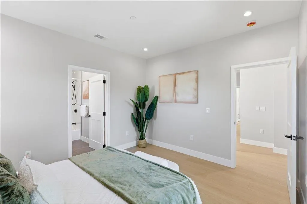 Experience luxury living at its finest in this brand-new modern masterpiece, perfectly situated in one of Silicon Valley's sought-after neighborhoods.This stunning all-electric residence with owned solar offers a thoughtfully designed 5-bedroom, 5.5-bathroom floor plan spanning approximately 2,168 square feet of high-end living space, including a versatile 2-bedroom, 2-bathroom ground-level ADU.The main residence welcomes you with high ceilings, creating an airy, light-filled ambiance complemented by designer fixtures. The functional open-concept layout features a gourmet kitchen complete with a waterfall island, custom cabinetry, integrated lighting, and abundant storage. The second floor boasts three en-suite bedrooms for maximum privacy and convenience.The attached ADU features its own private entrance and address, 9-foot ceilings, skylights, a separate laundry area, and an independent electrical meter-making it ideal for guests, multi-generational living,or rental income. Located just minutes to Santana Row and Westfield Valley Fair, and near the serene Municipal Rose Garden, this home offers unparalleled access to major tech hubs like Apple, Adobe,Intel,and Nvidia via highways 280,17,and 880.Unbeatable value! It won't last long!