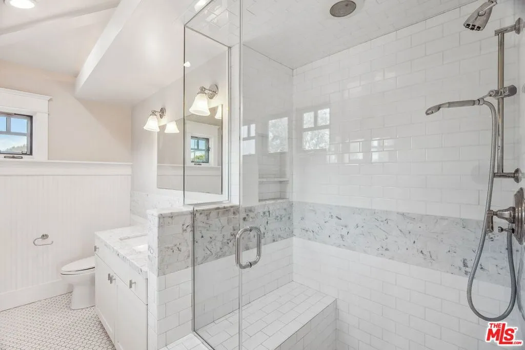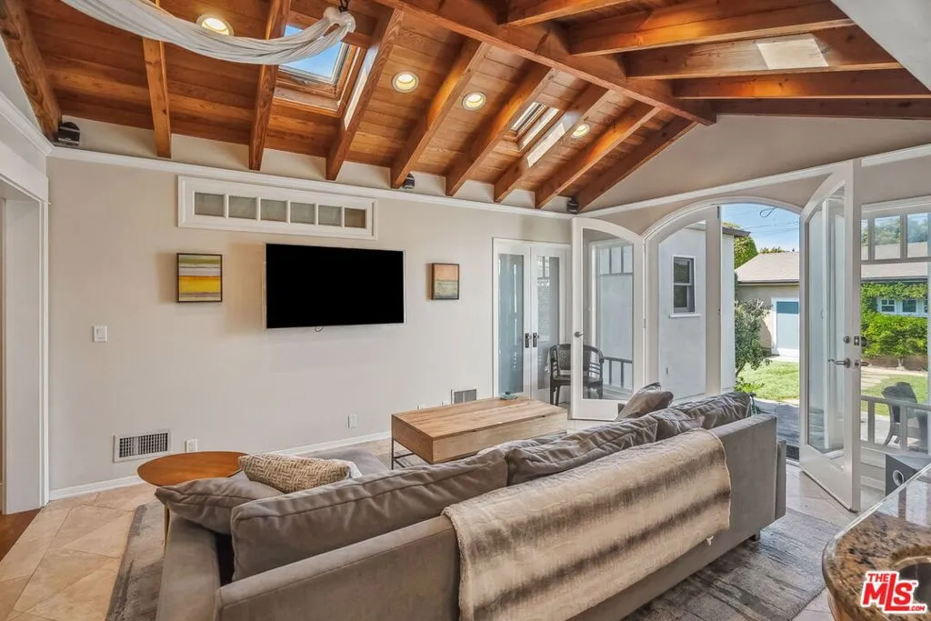 Welcome to this inviting craftsman-style home on a sunny corner lot in Santa Monica. With 2,872 square feet of living space on a 7,000 square foot lot, this residence offers five bedrooms and five and a half bathrooms, including four en suite bedrooms for added privacy, plus a bonus room that can be used as an office, playroom or an extra bedroom. The open kitchen and family room create a bright, comfortable space for daily living or entertaining, with direct access to a private backyard featuring a built-in barbecue, patio heating and lighting, and mature ficus trees. The kitchen is equipped with stainless steel appliances, a double oven, and a five-burner cooktop. Enjoy both indoor and outdoor fireplaces, a welcoming front porch, and outdoor patio sets. A 240-volt outlet is available for EV charging.