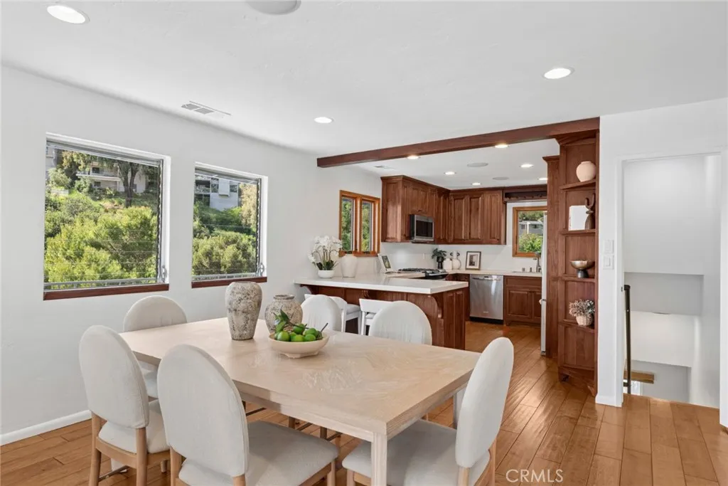 Tucked away at the end of the cul-de-sac in lower Bluebird Canyon, this Laguna Beach home enjoys peaceful canyon and ocean views ideal for outdoor relaxation or entertaining on multiple decks. The two-level open-concept floor plan features a main level with two bedrooms, one bath, hardwood floors, living room opening to an ocean-view deck, and dine-in kitchen with reclaimed teak cabinetry. The lower level includes a versatile bonus room with fireplace, deck, and bath, ideal as a primary suite, family room, media room, or gym. The property features an attached two-car garage for added convenience. Private trail access leads to Bluebird Lane, offering easy proximity to Cress Street Beach, Bluebird Park, gorgeous beaches, galleries, boutiques, hip district, restaurants, and award-winning schools—perfect coastal sanctuary.